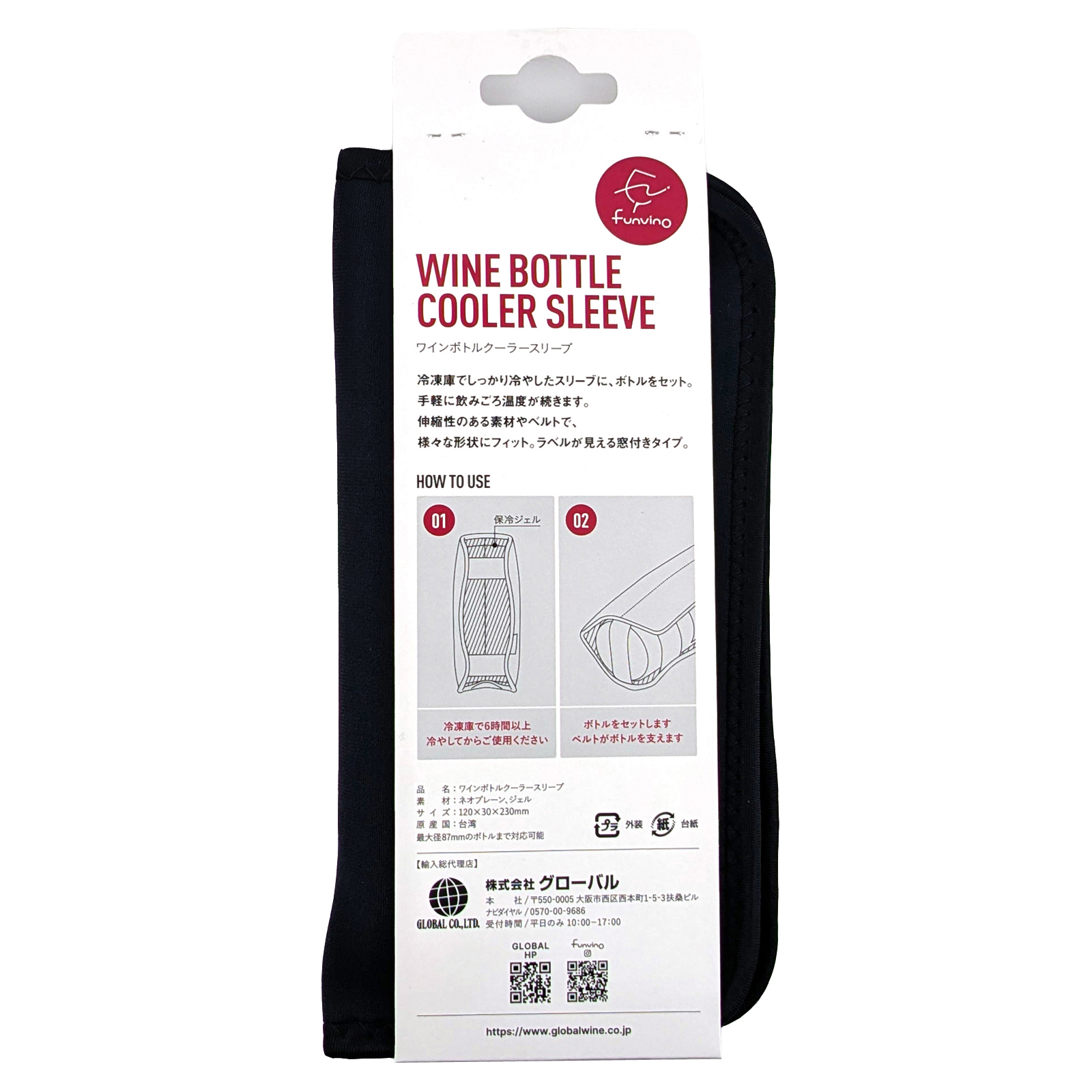 事前に冷凍庫で6時間以上冷やしておくだけで、ワインや日本酒の飲みごろ温度を手軽にキープします。伸縮性のある素材とマジックテープにより、多様なボトル形状にぴったりフィット。